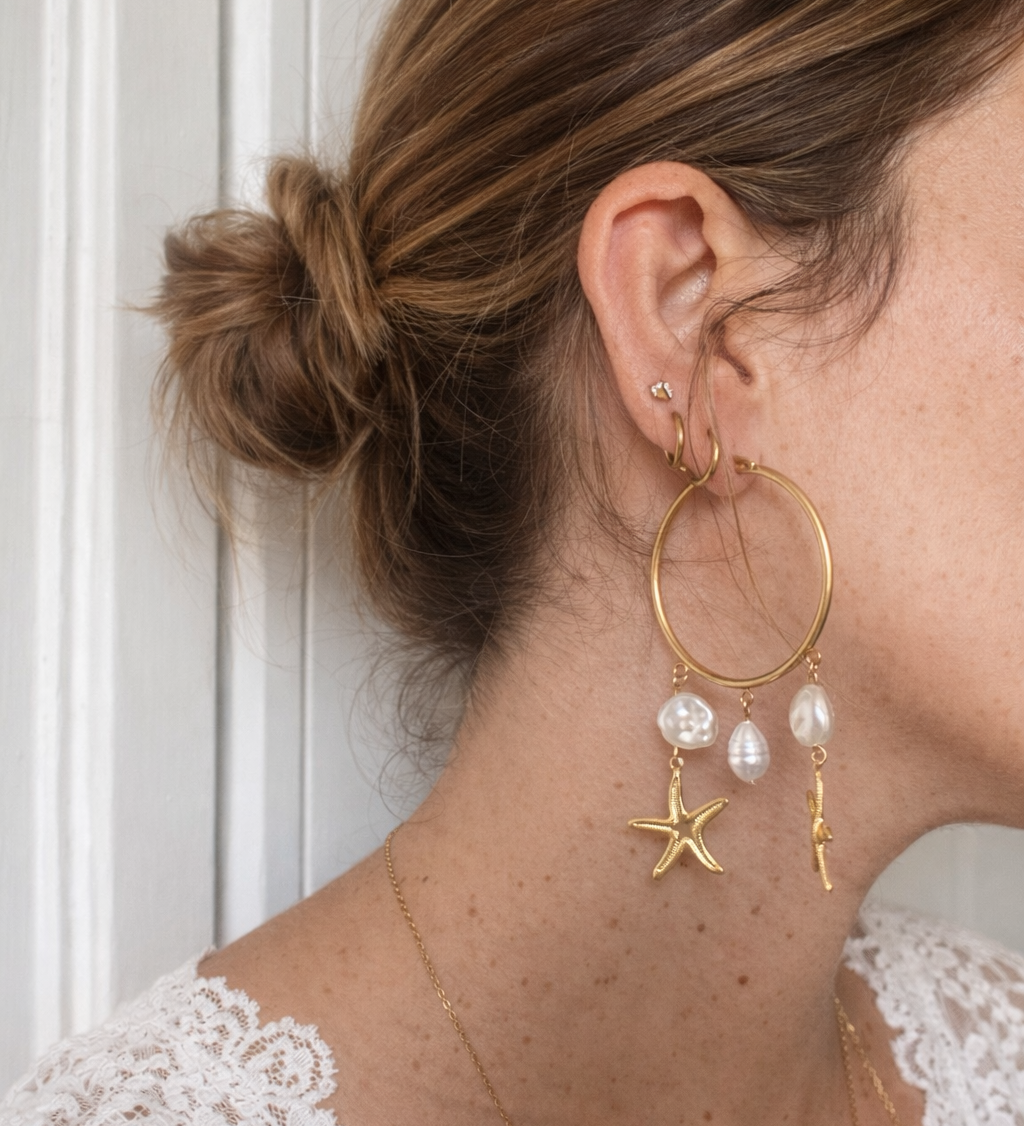 Bijoux et accessoires inspirés par les astres et la mer, conçus pour sublimer votre style avec élégance.