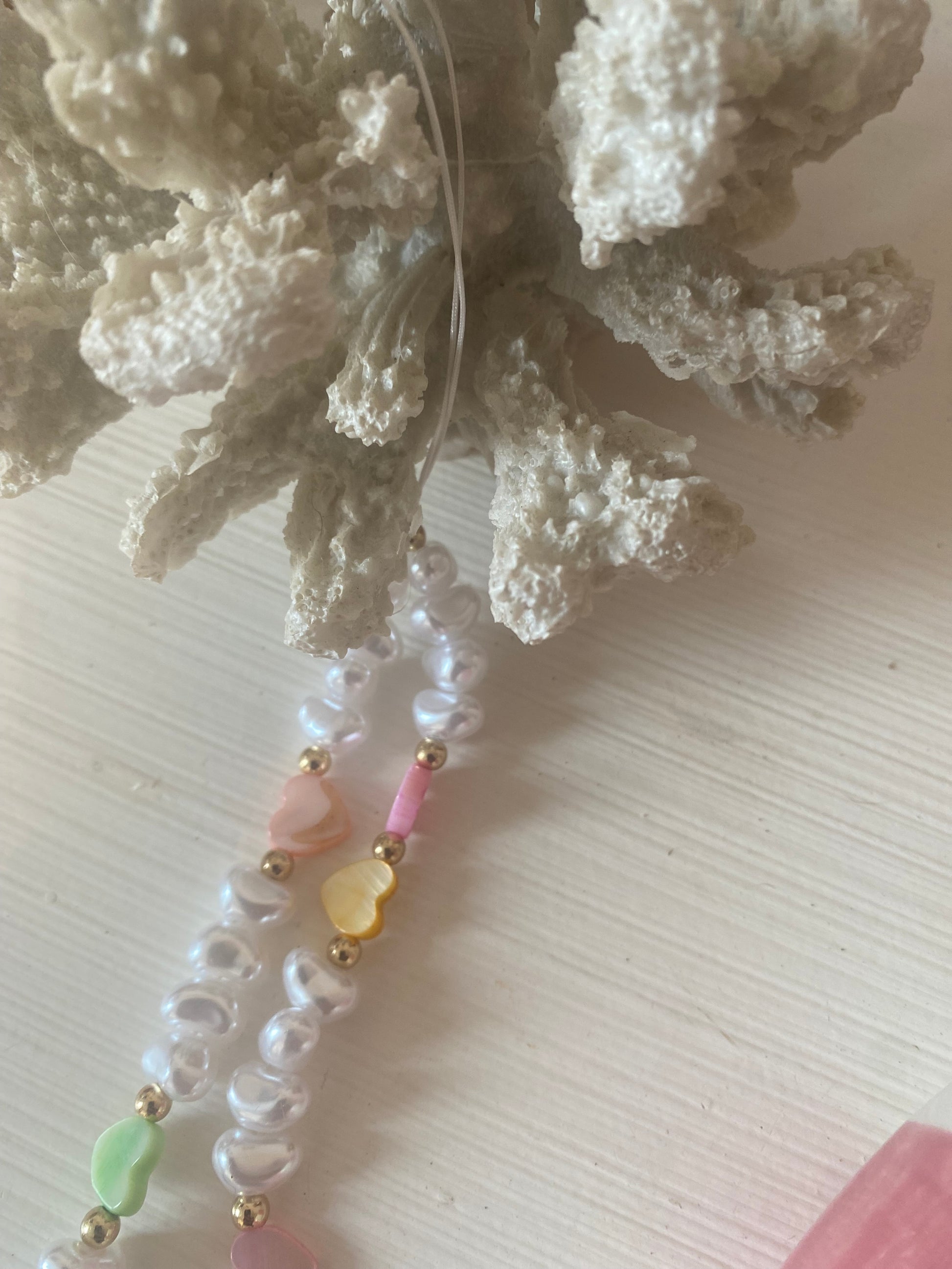 🧿 Matériaux : Assemblage de perles en acrylique || perles cœur en nacre ultra colorées, sélectionnées avec soin || Attache résistante.