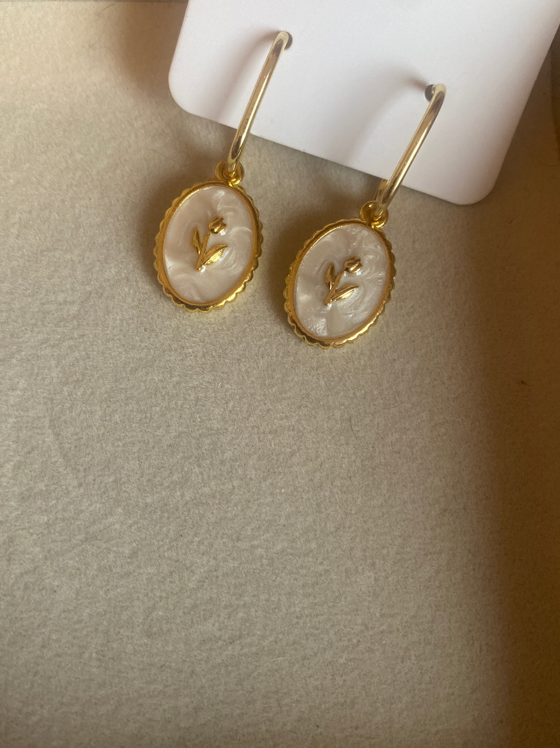 🧿 Matériaux : Créoles ouvertes en acier inoxydable doré || pendentif en acier inoxydable et éclats de nacre.