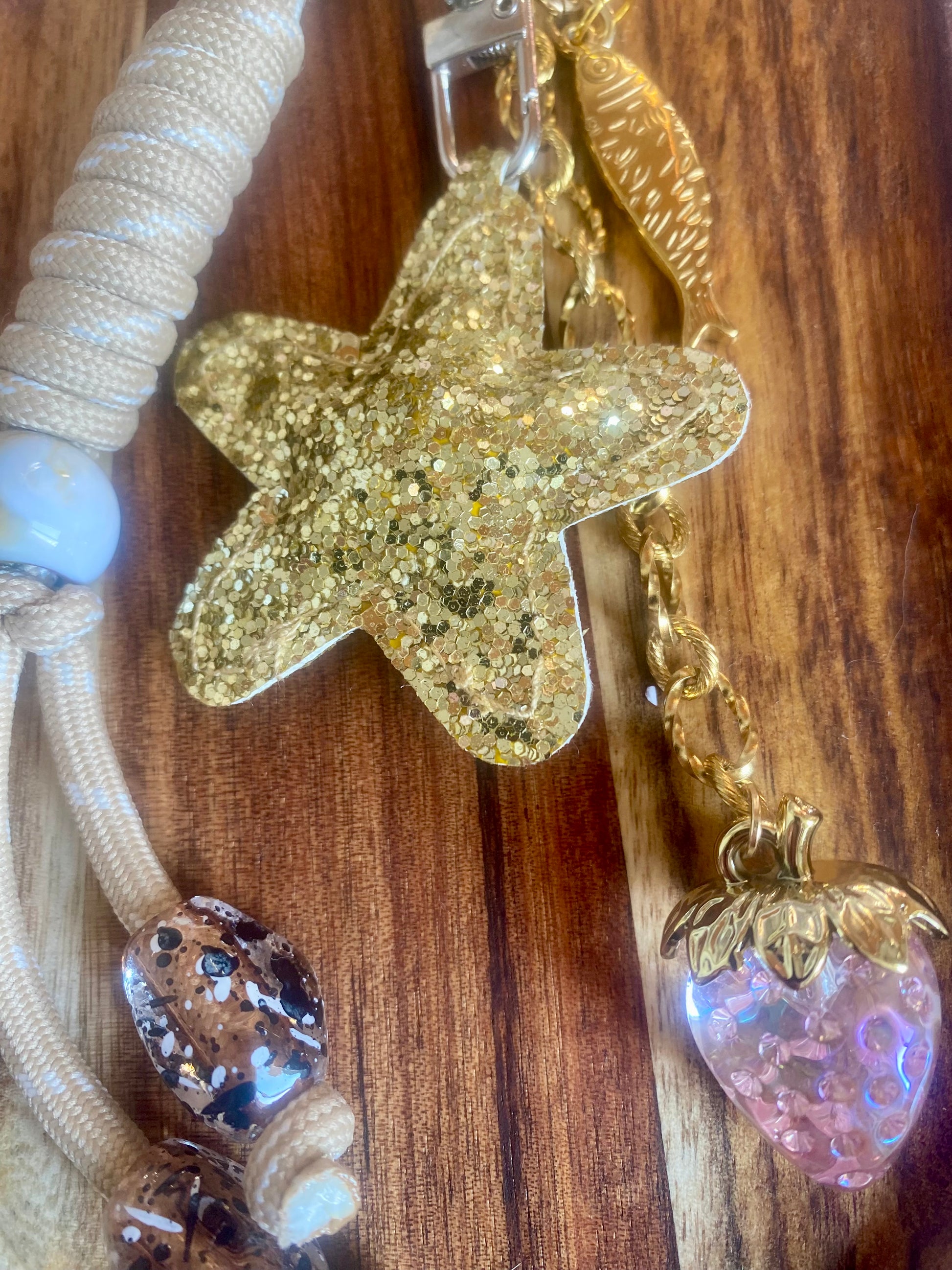 • Etoile dorée en tissu et paillettes || fraise en acrylique