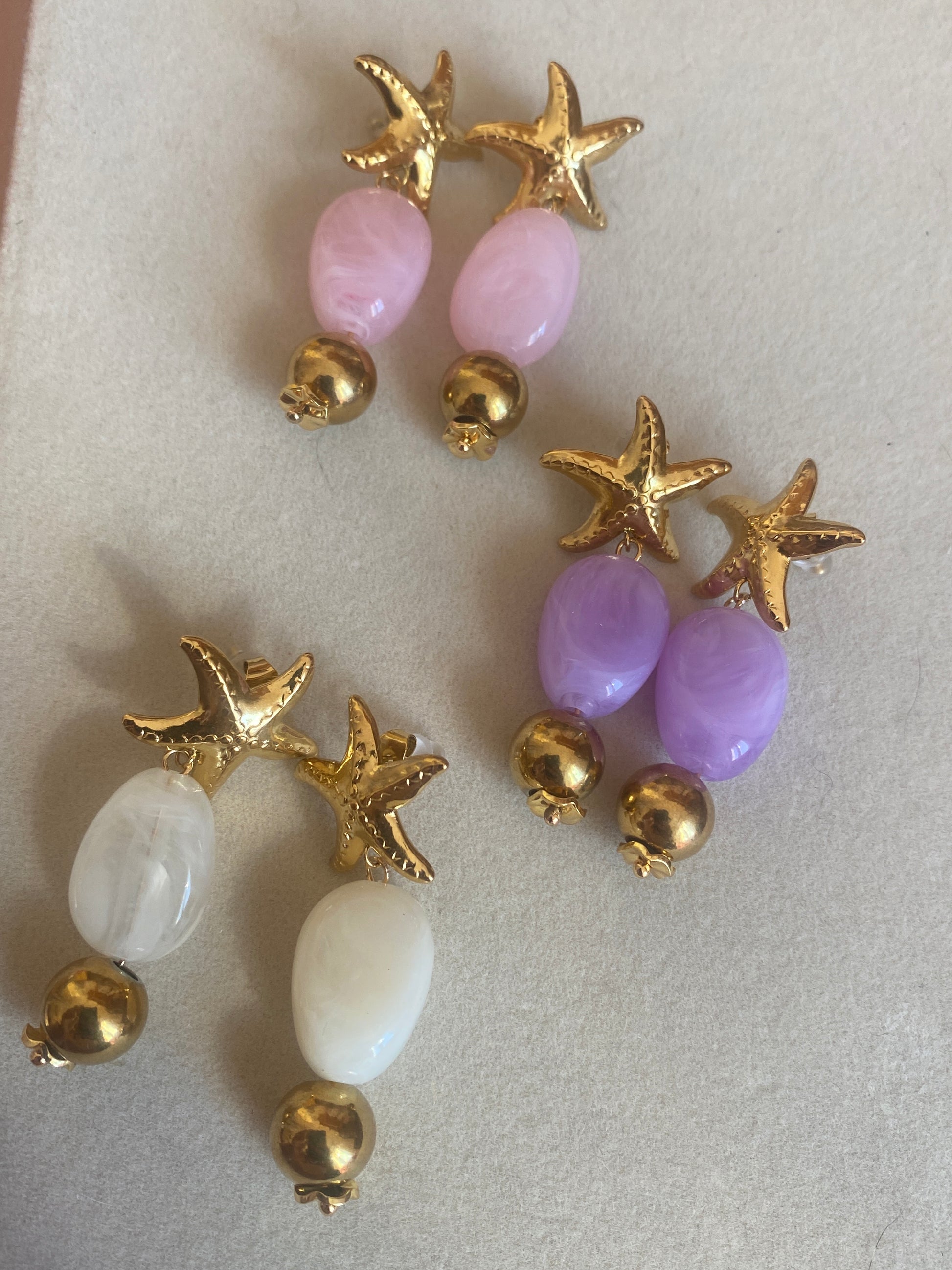 🧿 Matériaux : Puces dorées en étoiles de mer en acier inoxydable || Assemblage de perles en acrylique et acier.